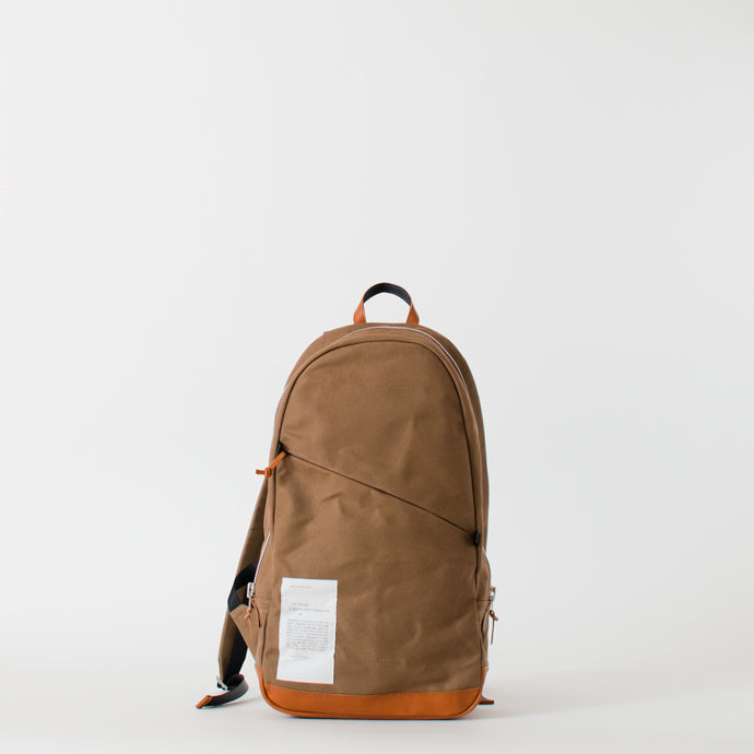 メインのファスナーはYKKのアルミ製を採用しています。使い始めは少し硬めですが、徐々に角が丸くなってスムーズに開閉できるようになります。2つあるスライダーは“尻合わせ”と呼ばれる配置になっており、ファスナーを閉じると2個のスライダーは真逆の位置に。これにより、ファスナーを開けようとした時に常に決まった位置にスライダーがあるため、スライダーの位置を探すのに手間どることもありません。また、背負った状態から肩紐を片方だけ外して荷物の出し入れする時にも便利な配置です。 ポケットには少しだけマチをつけています。お財布やケータイなど厚みが3cm程度なら内側に膨らむので、バッグ本体のフォルムには影響が出にくい構造です。